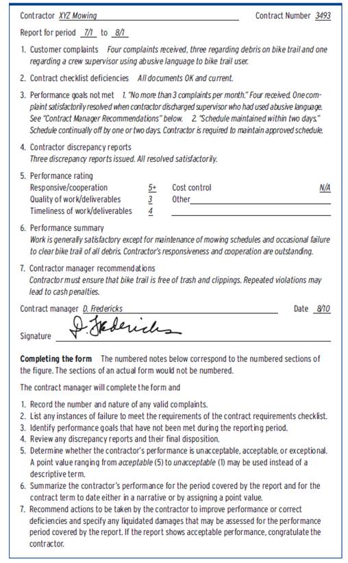 The report is prepared by the contract manager using information received from all available sources during the evaluation period (personal observations, team member observation reports and memoranda, complaints received, etc.).