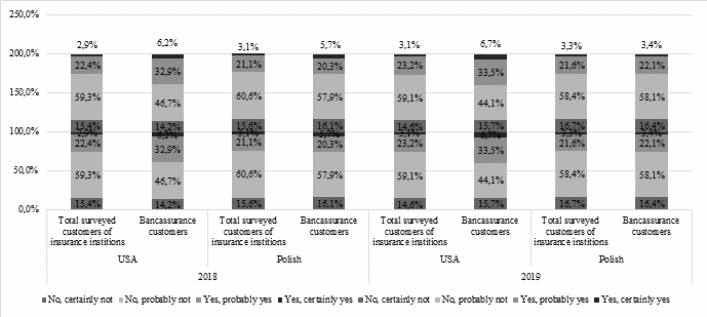 Studies conducted in February, March and April in 2018 and 2019, of the service offered to individual customers residing in the territory of Polish and USA, met the following criteria: they had direct contact with an intermediary (agent or broker) or an employee of a property insurance institution, they had a life insurance agreement and were 18+. The questionnaire was addressed directly through pollsters towards individual customers.