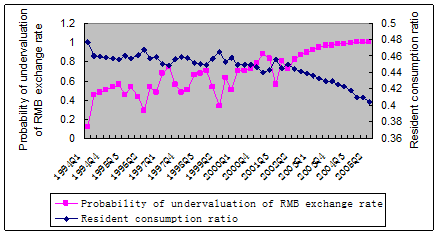 Fig. 3: Probability of undervaluation of RMB exchange rate and resident consumption ratio