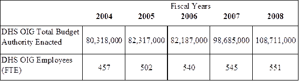 Table 1. DHS OIG Enacted Budget Authority - FY 2004 - FY2008